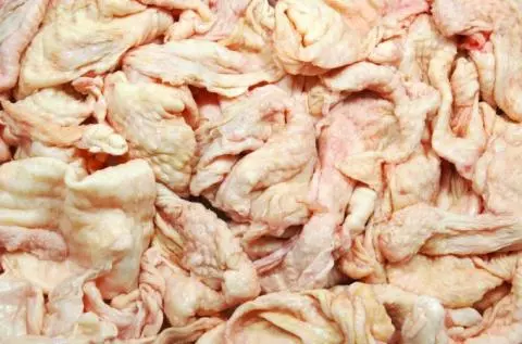 Chicken skins are often used in products requiring meat substitutes or binders. Because of its fibrous texture and high collagen content, chicken skins are often used in the production of sausages, pâté, meatballs, and other meat products to improve the binding, texture, and flavor of the product. In addition, chicken skins are also commonly used in soups, sauces, and other dishes as a binding agent.